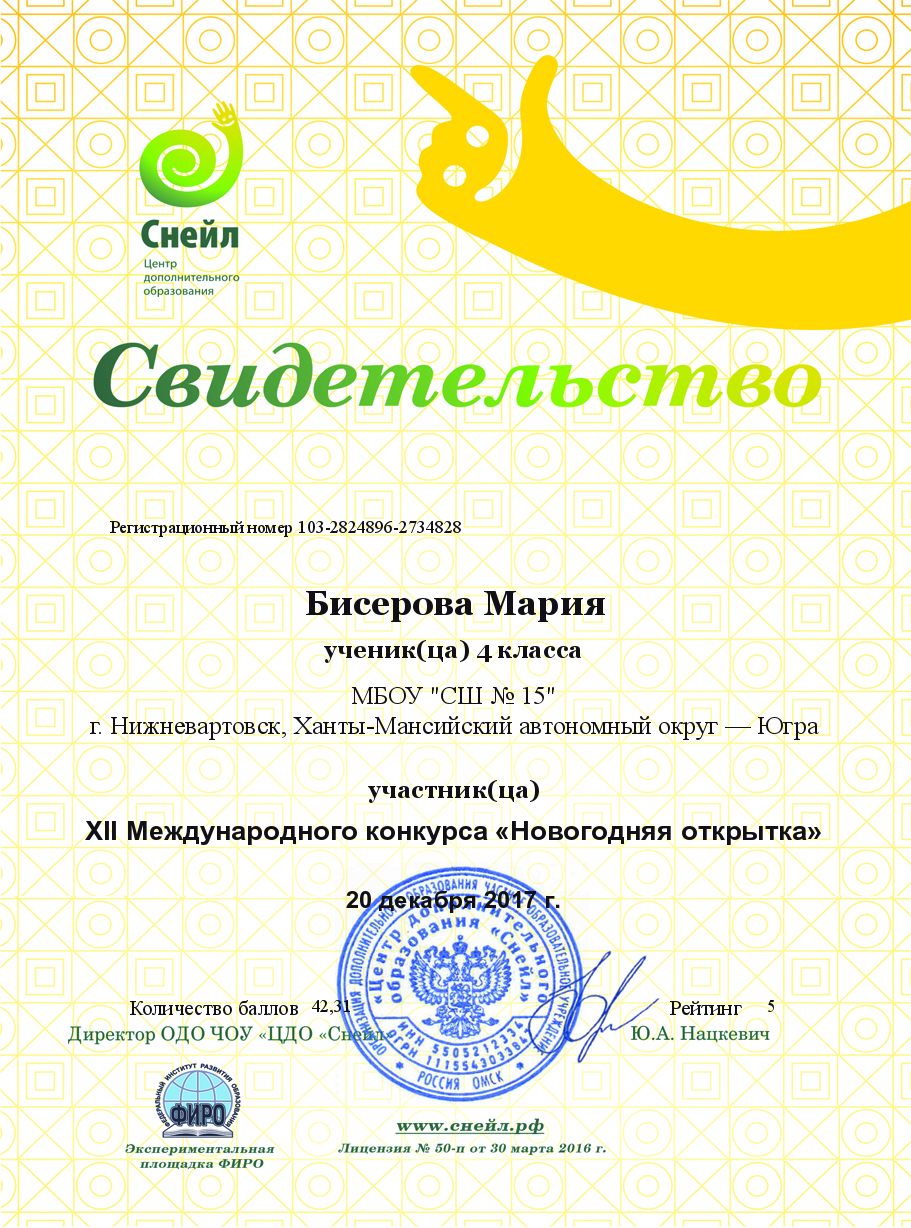 Вундеркинд 2017 Бисерова Мария
